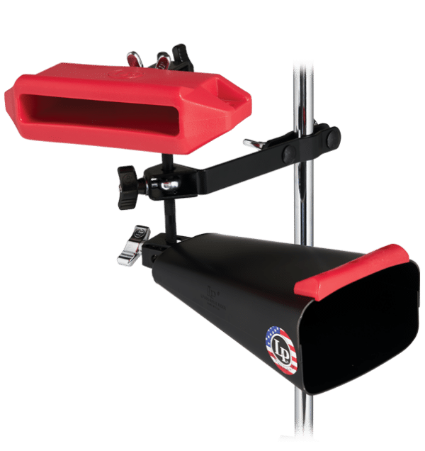 LP Rock Ridge Rider Cowbell mit rotem Jenigor Kantenschutz LP Medium Pitch Jam Block aus Jenigor, dem exklusiven Kunststoff von LP