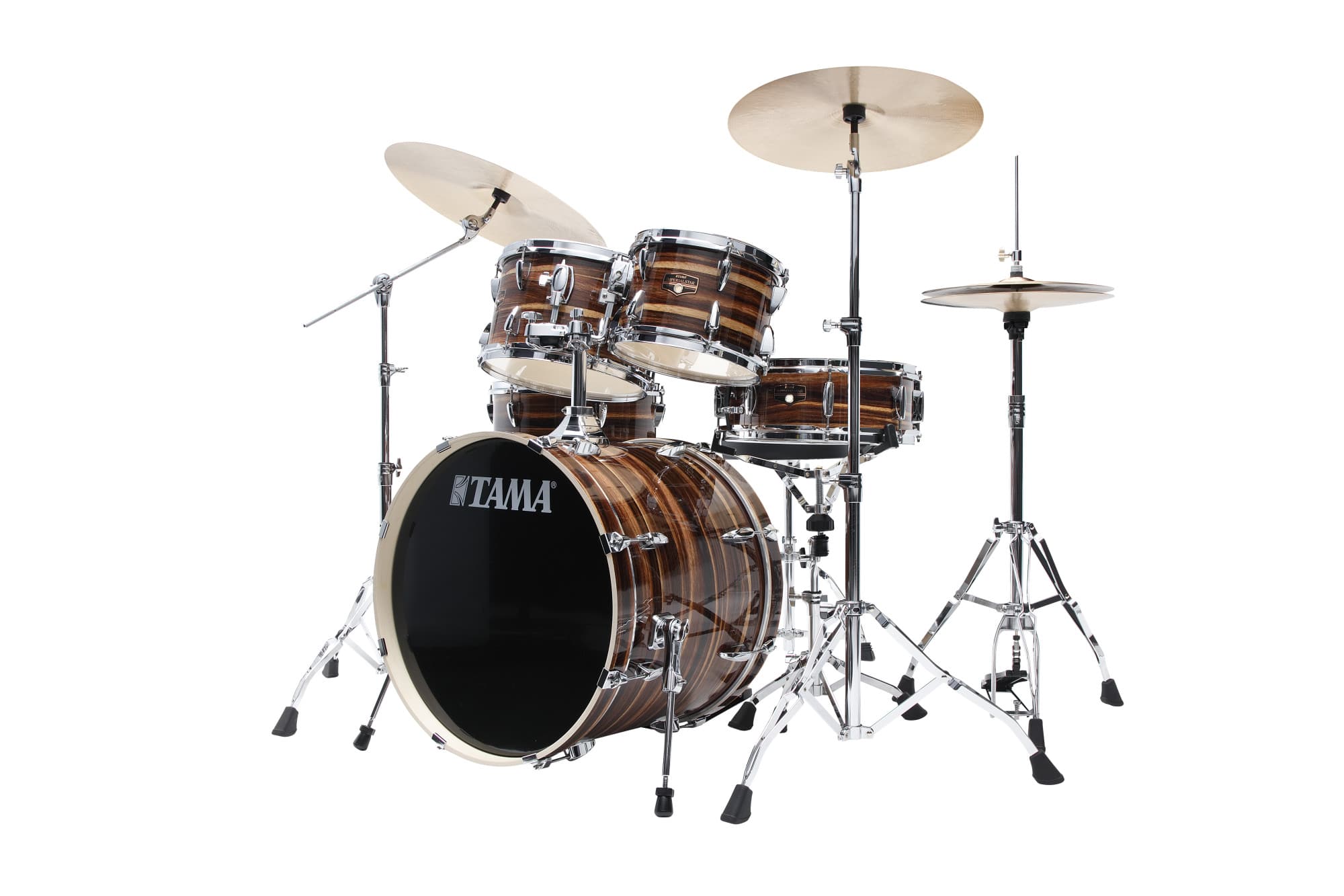 Tama Imperialstar Drum Set 5 teilig – Coffee Teak Wrap/Chrom HW + MEINL Cymbals HCS Cymbal Kit/Stage Master Double-Braced Hardware Kit